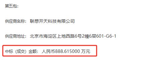 联想开天科技有限公司中标第五包,中标金额为 888.615 万元。其投标产品为联想_主机:M70h G1t-D178 显示器 MT524 G2e,产品单价(不包括原厂质保服务)为 4410 元,数量达到 2015 台。该配置的台式计算机支持麒麟、统信 UOS、中科方德等多种操作系统,能够满足不同用户的多样化需求。