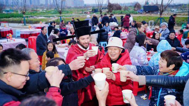 在成都玖阙府的“坝坝宴”上,来自南非的Warren穿上汉服体验杀年猪、吃百家宴,他感叹:“这场百家宴非常棒,让大家感受到彼此的温暖和善意。”已在成都生活八年的他,会用汉语说“新年快乐,恭喜发财”,并将这里视为“第二故乡”。这种沉浸式的文化体验,让春节不仅是中国人的团圆节,更成为连接中外的文化纽带。在青岛、郑州等地,多个社区还组织了套大鹅等趣味民俗活动,进一步拉近了邻里距离。